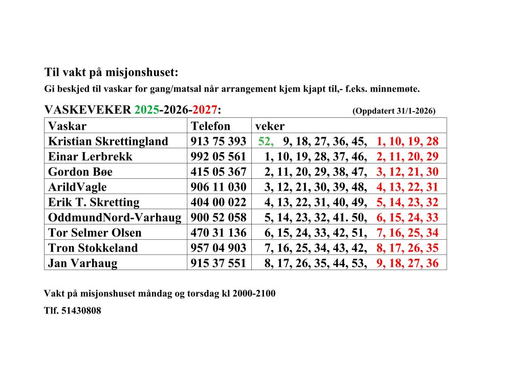 En gruppe har tatt på seg ansvar for gulvvask med maskin. En uke per person. Oppdatert 31/1-2026
